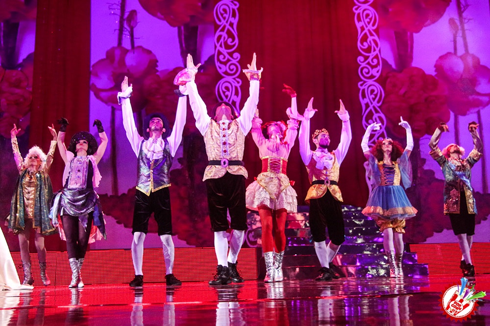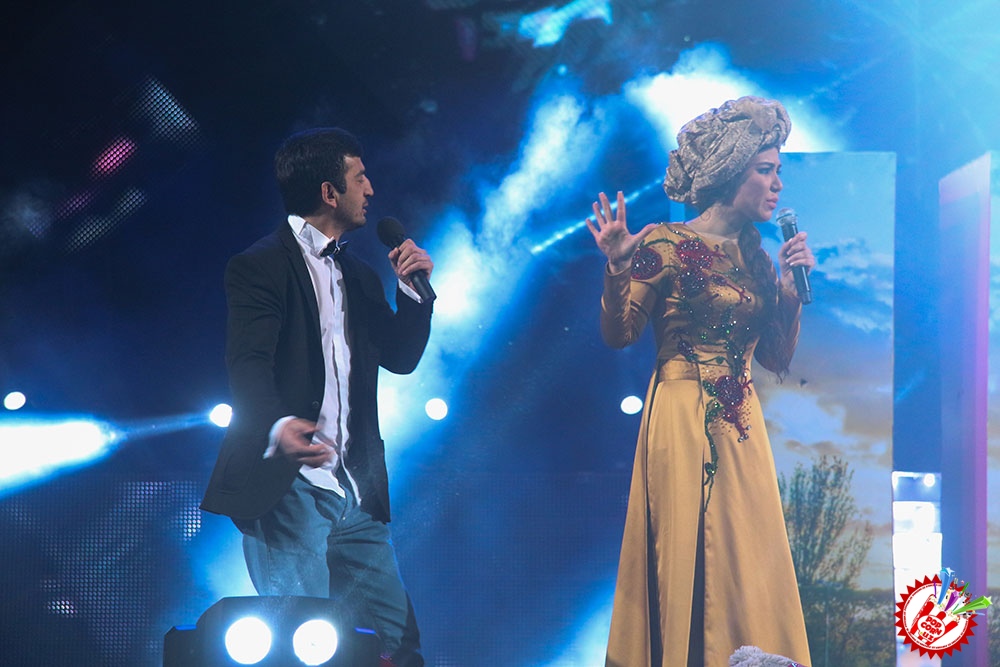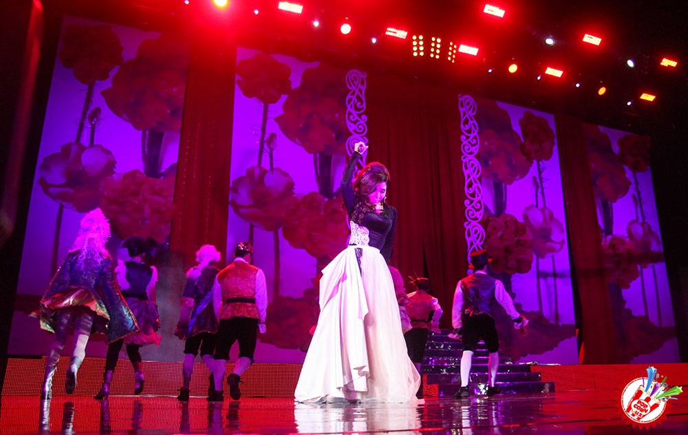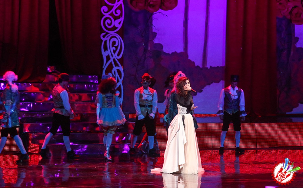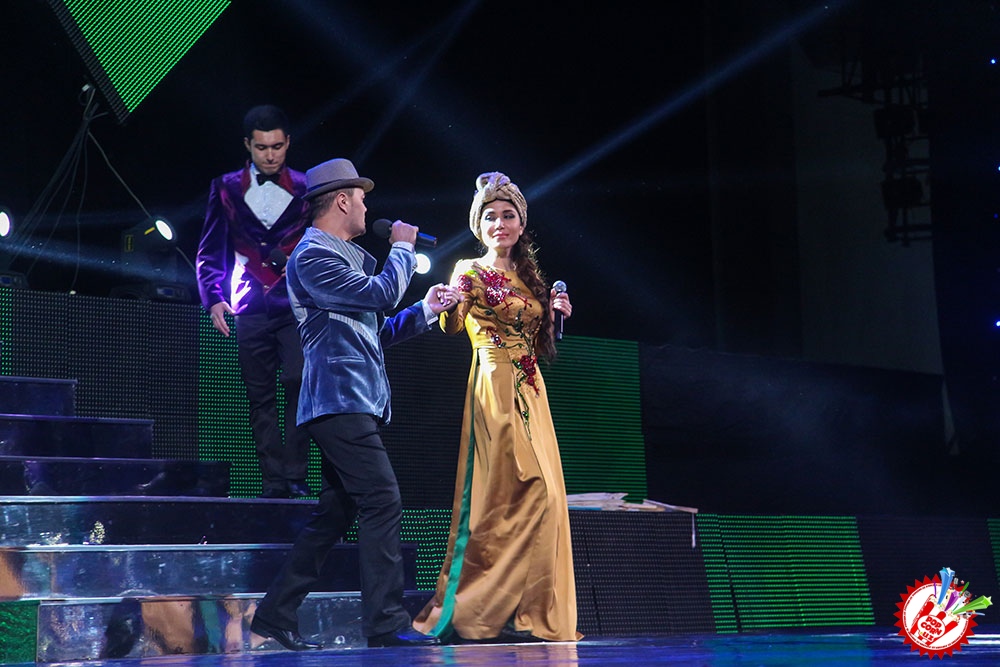 Саҳна қизил атиргуллар билан безатилган бўлиб ҳар бир қўшиқ айтилганида маълум бир декорация деталлари ўзгариб турди. Иккинчи ва учинчи блокларда эса саҳна кўриниши умуман ҳеч ким кутмаган ҳолда намоён бўлди.