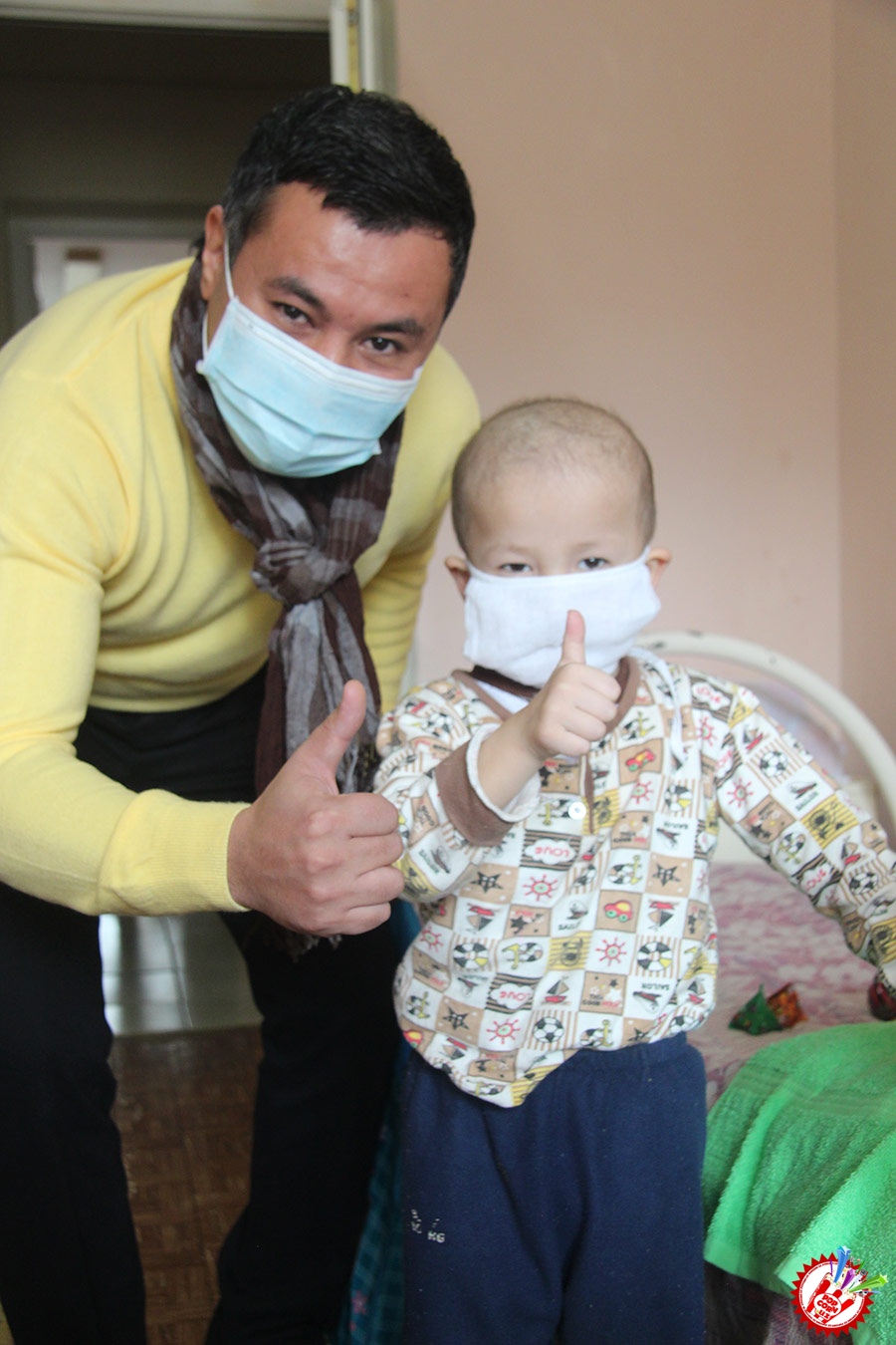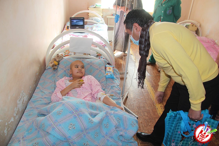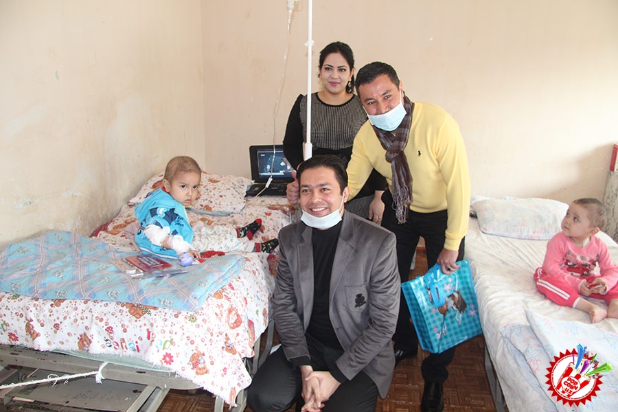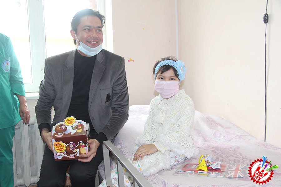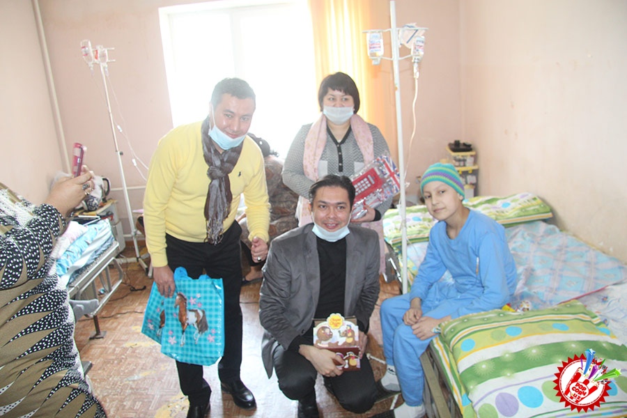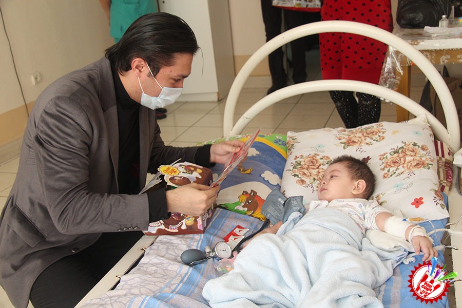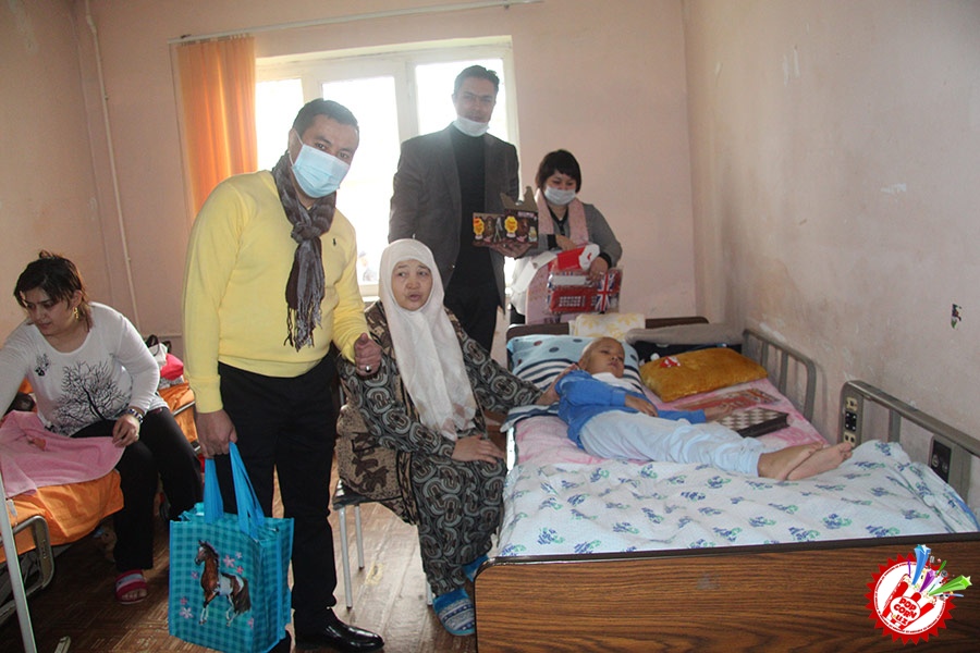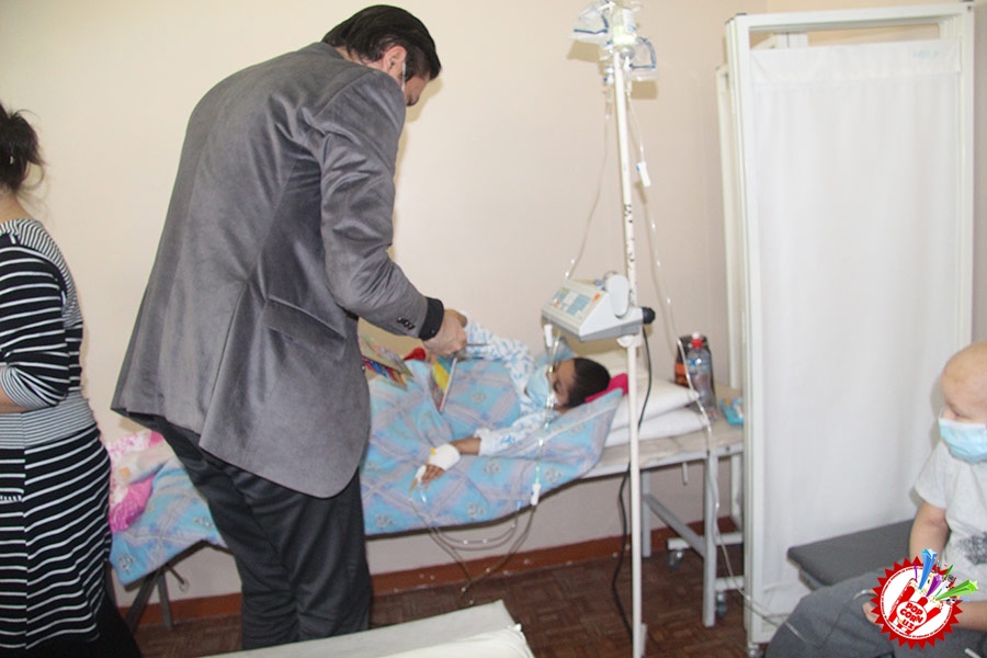 Кўп ўтмай касалхонага ташриф буюриб бўлим бошлиғи Наргиза Нусратуллаева билан юзлашдик. Тадбирга бир қанча инсонлар ташриф буюришган бўлса-да, беморлар хонасига тўрт кишига рухсат берилди. Ички тартиб қоидага итоат этган ҳолда, юзимизга ниқоб тақиб ичкарига кирдик. Мазкур тадбир ташкилотчиларидан бири, чет тилларига ихтисослаштирилган ўқув маркази раҳбари Шаҳноза Шарипова, актёр ва юрист Отабек Маҳкамов, хонанда Абдумалик Тотли ҳамда сайтимиз ҳодими томонидан келтирилган бир қатор совғалар, жумладан, китоблар, футболкалар ва ширинликлар бўлимдаги барча бемор болажонларга топширилди.