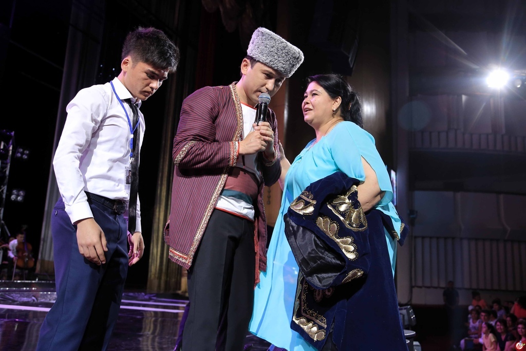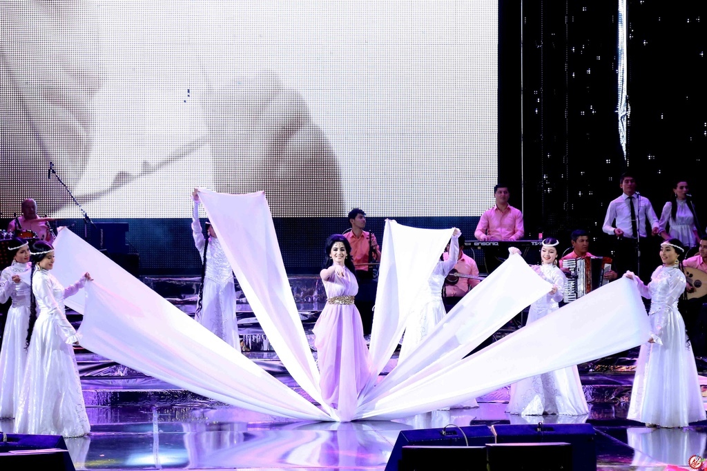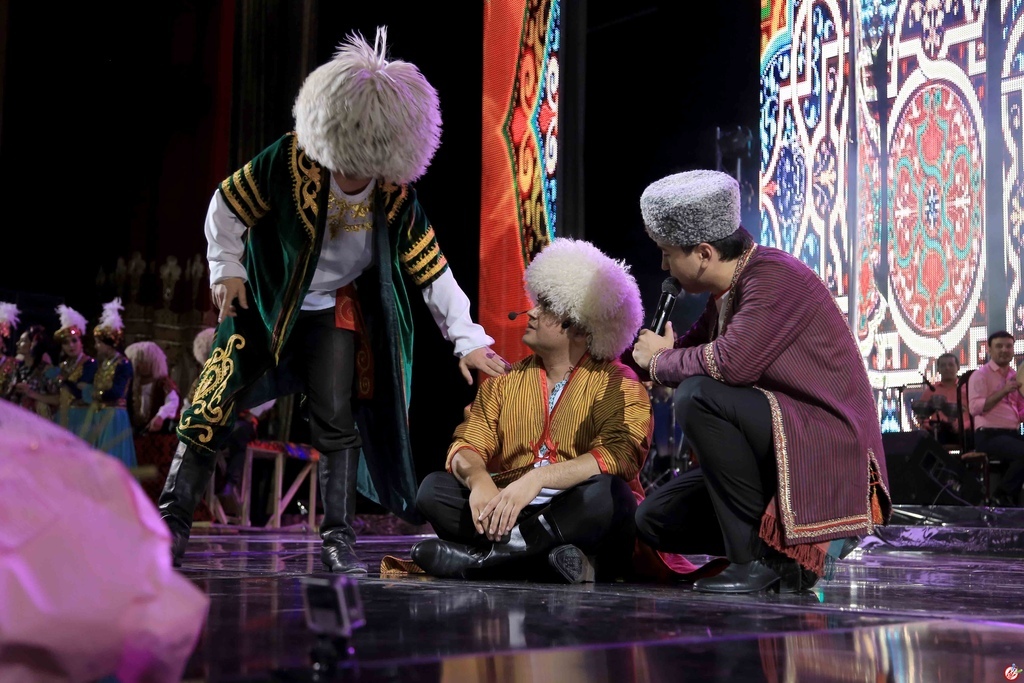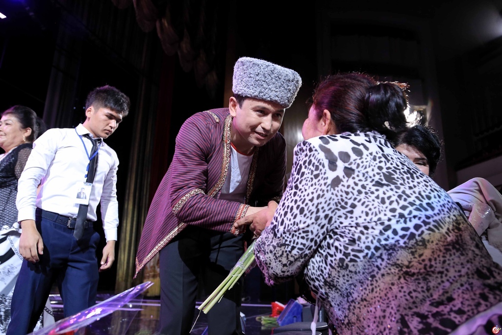 Шундан сўнг ижодкор залдаги томошабинлар орасида Туркманистондан, Қорақалпоғистондан ташриф буюрган ашадий мухлислари учун туркманча ҳамда қорақалпоқча қўшиқларидан куйлади.