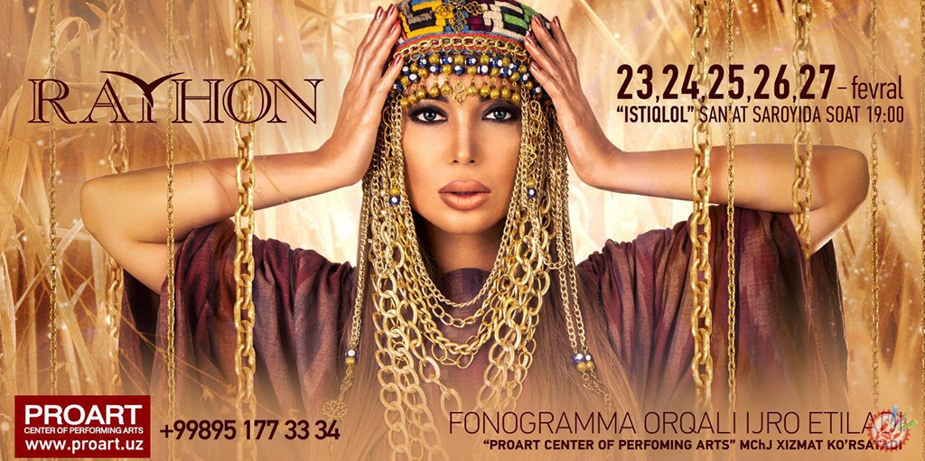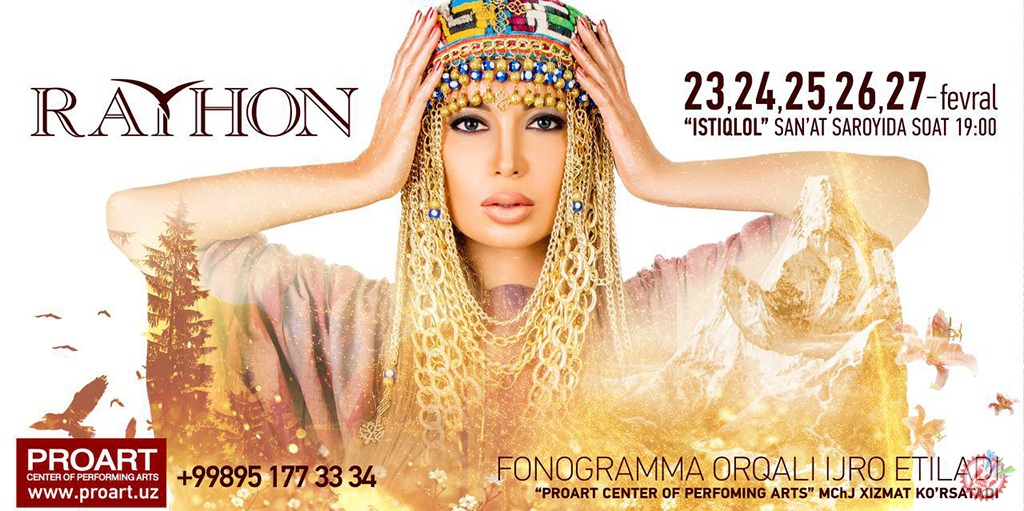 Йил бўйи кутилган концертнинг кутилмаган катта намойиши! 23, 24, 25, 26, 27 феврал кунлари “Истиқлол” санъат саройида Ўзбекистонда хизмат кўрсатган артист Райхон Ғаниевадан беқиёс шоу-концерт. Энг янги, энг сара тароналар ва бетакрор, унутилмас шоу-дастур! Концерт ташкилотчиларидан кутилмаган ўзгача ёндашув. Катта жамоадан юқори даражадаги энг катта дастур. Бу йилгиси сиз кутганданда ёрқинроқ бўлади! Шов-шувли онлар яқин! Кузатишда давом этинг.