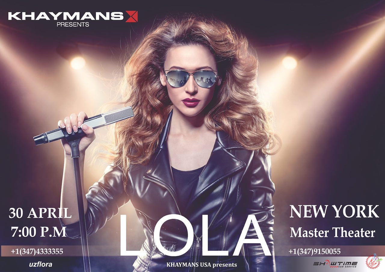 Хонанда Лола апрель ойининг сўнгги кунида Нью-Йорк шаҳрида ўзининг концерт дастурини тақдим этади. Фақат бир кун! Жонли ижро, жонли мусиқа, ҳис-ҳаяжонга тўла онлар, эмоцияга бой чиқишлар, яна кўплаб кутилмаган совғалар барчаси сиз учун. Хонанда 30-апрель, кечги соат 7:00 да “Master Theater”да бўлиб ўтадиган мазкур дастурга барчангизни таклиф этади. Бундай имкониятни қўлдан бой берманг.