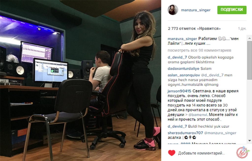 Хушовоз хонанда Манзура янги қўшиқ устида иш олиб бораётганини маълум қилди. Овоз ёзиш студиясида тушган фотосуратини инстаграм ижтимоий тармоғига жойлаган хонанда яратилаётган қўшиқ номи “Мен Лайли” эканини ошкор қилди.