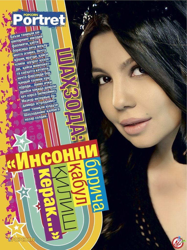 Бу галги сон мафтункор Шаҳзода мухлисларини хушнуд этиши тайин. Сабаби бу сафарги суҳбат одатдаги интервьюлардан мутлақ фарқ қилиб Шаҳзоданинг ички оламига, қалб дунёсига саёҳатни таклиф этади. Шаҳзода аслида қандай инсон? Ҳар гал қўшиқ куйлаганида кўнглидан нималар кечади? Инсонлардаги қайси фазилатларни қадрлайди? Уни тушуниш қийинми? Бу ва шунга ўхшаш бошқа кўплаб саволларга жавобни POPCORN журналининг 4- сонида жавоб топасиз.