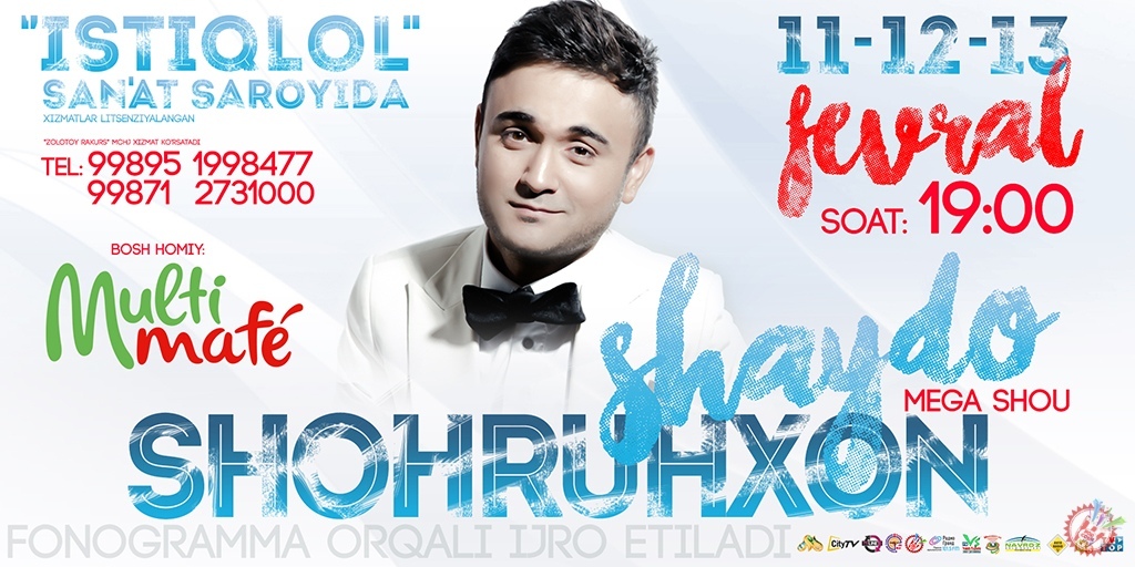 Маълумки, эстрадамизнинг ёрқин юлдузи Шоҳруҳхон 11-, 12-, 13-февраль кунлари “Истиқлол” санъат саройида ўзининг яккахон концерт дастурини тақдим этади. “Шайдо” деб номланган мазкур дастурга жуда ҳам оз вақт қолди. Хонанда кутилмаган совғаларга бой бўлиши кўзда тутилган концерт дастурига барчани чорлаб қолади. Айни дамда концертга тайёргарлик ишлари авжида. Қизиқ Шоҳруҳхон ўз дастурида мухлислари учун қандай туҳфаларни тақдим этар экан. Кузатишда давом этамиз.