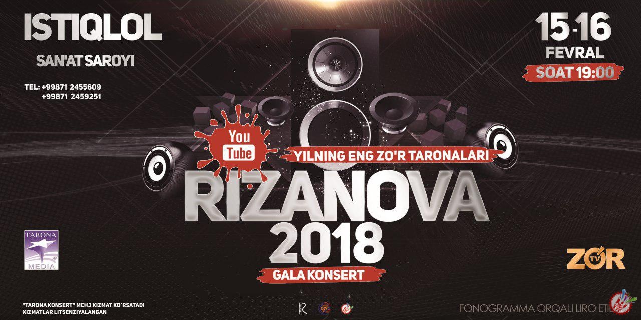 2018 йил кутилаётган концертлар қаторидан яна бир катта ва ёрқин галаконцерт ўрин олди. 15-16 февраль кунлари "Истиқлол" санъат саройида RIZANOVA 2018 галаконцерти бўлиб ўтади. Ўтиб бораётган йилнинг энг зўр тароналари ўрин олган бу дастурда энг хит ижод намуналари тақдирланиши режалаштирилган.