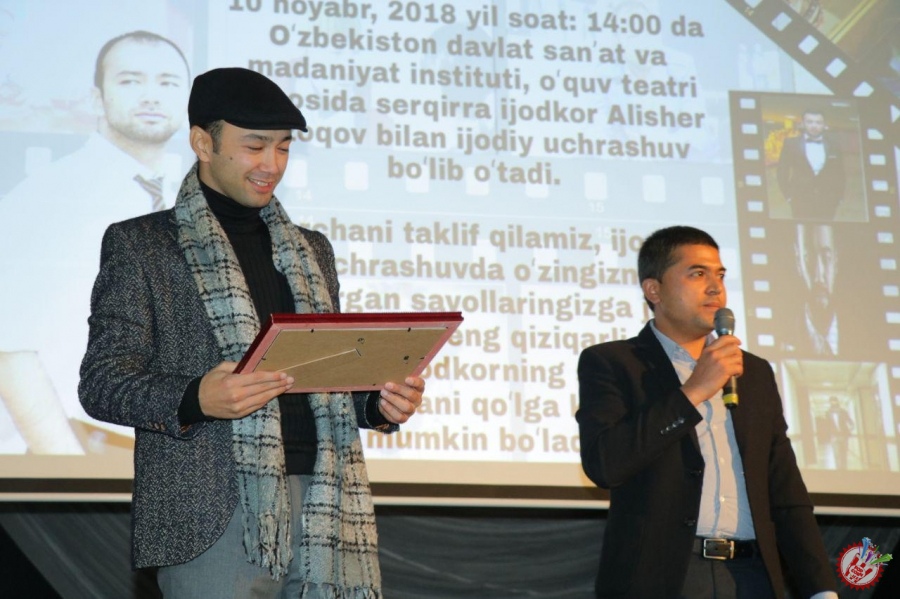 Ўзбекистон давлат санъат ва маданият институти "Овоз режиссерлиги ва операторлик маҳорати" кафедраси мудири, доцент Иқбол Мелиқўзиев ташаббуси билан институтда серқирра ижодкор, актёр Алишер Узоқов билан ижодий учрашув бўлиб ўтди.